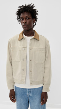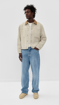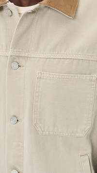 - Fabric: Mid-weight, non-stretch canvas - Suede trim - Collared neckline - Long sleeves with button cuffs - Button placket - Patch breast pockets - Welt front pockets - Shell: 100% cotton - Lined - Lining: 65% polyester/35% cotton - Dry clean - Imported, Turkey Style #FRAME32970 Size & Fit Model measurements: Size M: Corey (6'1") usually wears size M Measurements from size M Length: 25.25in / 64cm Sleeve: 32.25in / 82cm Chest: 51.25in / 130cm