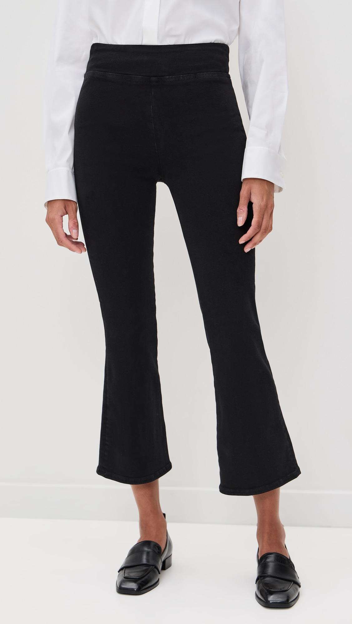 flared denim trousers