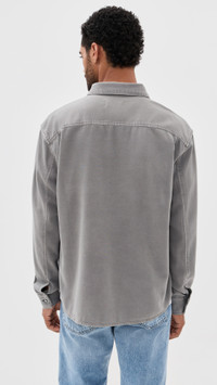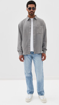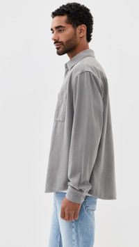 - Fabric: Mid-weight, non-stretch denim - Collared neckline - Long sleeves with button cuffs - Button placket - Patch breast pocket - Shell: 61% cotton/39% lyocell - Wash cold - Imported, Tunisia Style #FRAME32899 Size & Fit Model measurements: Size M: Zach (6'0") usually wears size M Measurements from size M Length: 28.25in / 72cm Sleeve: 34.25in / 87cm Chest: 47.25in / 120cm