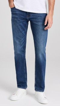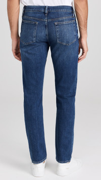- Fabric: Mid-weight, stretch denim - Fading and whiskering - Button closure and zip fly - 5-pocket styling - Shell: 81% cotton/14% recycled cotton/4% recycled polyester/1% elastane - Wash cold - Imported, Turkey Style #FRAME32501 Size & Fit Model measurements: Size 33: Kyle (6'3") usually wears size 33-34 Measurements from size 33 Rise: 10.25in / 26cm Inseam: 32.25in / 82cm Leg opening: 15.25in / 39cm
