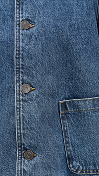 - Fabric: Mid-weight, non-stretch denim - Collared neck - Long sleeves - Button placket - Patch front pockets - Shell: 100% cotton - Wash cold - Imported, Turkey Style #FRAME33002