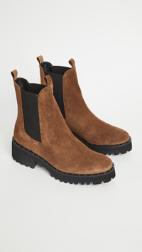 - Leather: Calfskin suede - Studded welt - Chunky heel - No closure, pull-on design - Round toe - Rubber sole - Leather lining - Made in Spain - This item cannot be gift-boxed Style #FSALV30192 Size & Fit Material may feel snug at first, but will begin to soften and form to your foot with regular wear. Heel: 2in / 50mm