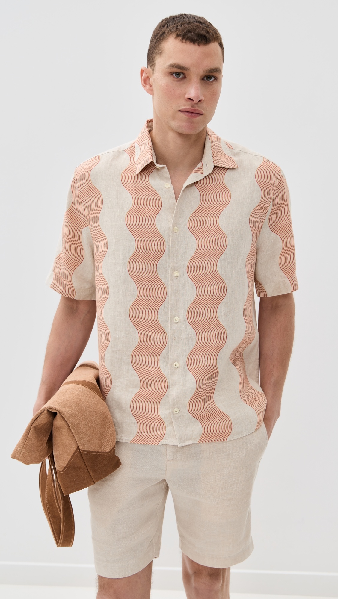 - Fabric: Lightweight, non-stretch linen weave - Wavy stripe print - Collared neckline - Short sleeves - Button placket - Shell: 100% linen - Wash cold - Made in Portugal Style #FRCOB30084