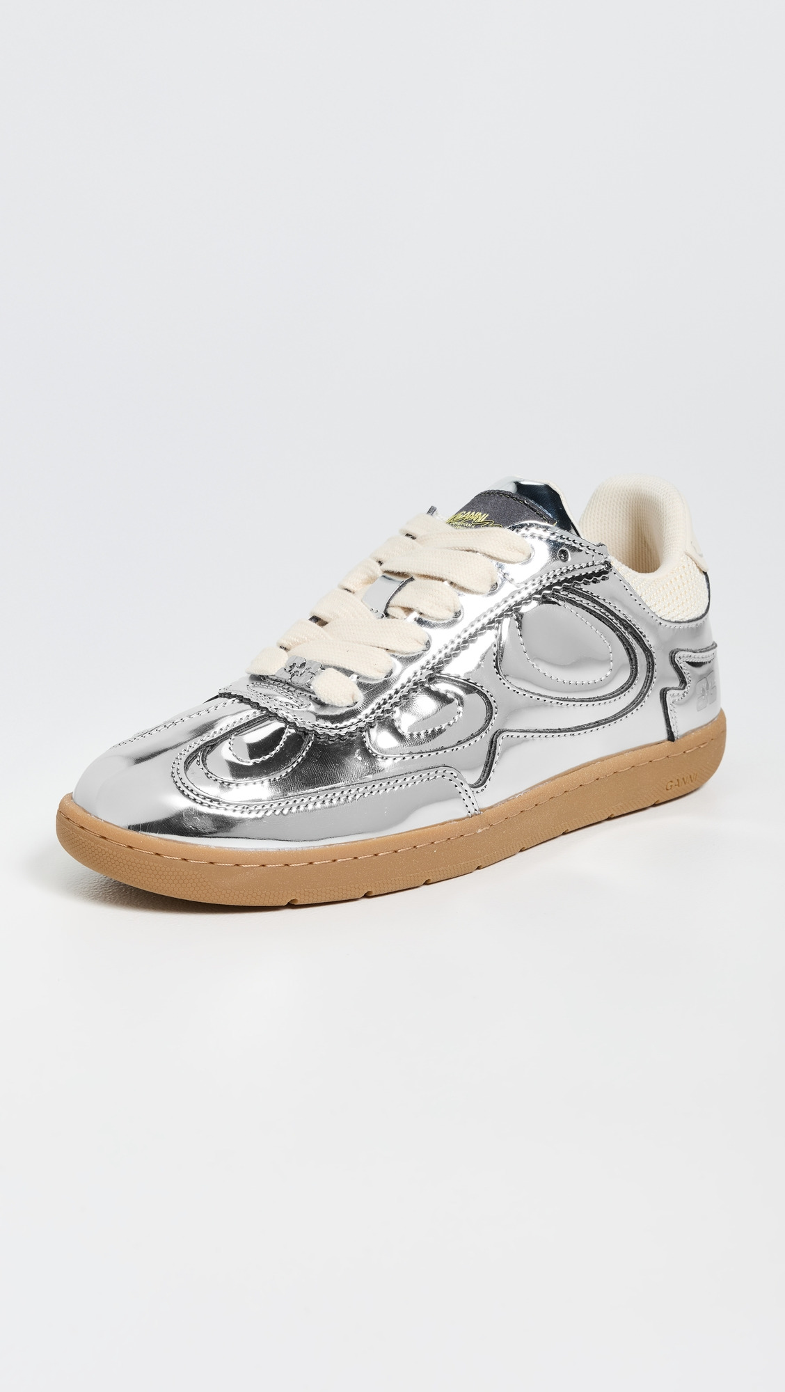 - Upper: Leather - Padded collar and tongue - Metallic finish - Lining: Textile - End use: Lifestyle - Lace-up closure - Round toe - Rubber sole - Made in Portugal - This item cannot be gift-boxed Style #GANNI32366
