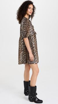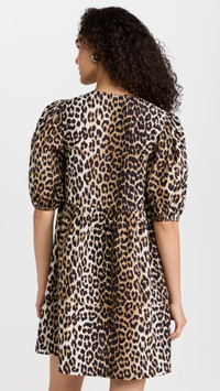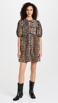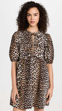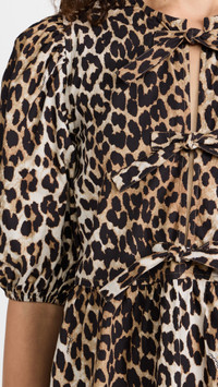 - Fabric: Lightweight, non-stretch poplin - Ties at bust - Leopard print - Mini length - Crew neck - Elbow-length puff sleeves with elastic cuffs - Pullover design, no closure - Shell: 100% cotton - Unlined - Wash cold - Imported, India Style #GANNI32180 Size & Fit Measurements from size 32 Length: 34.75in / 88.0cm, from shoulder