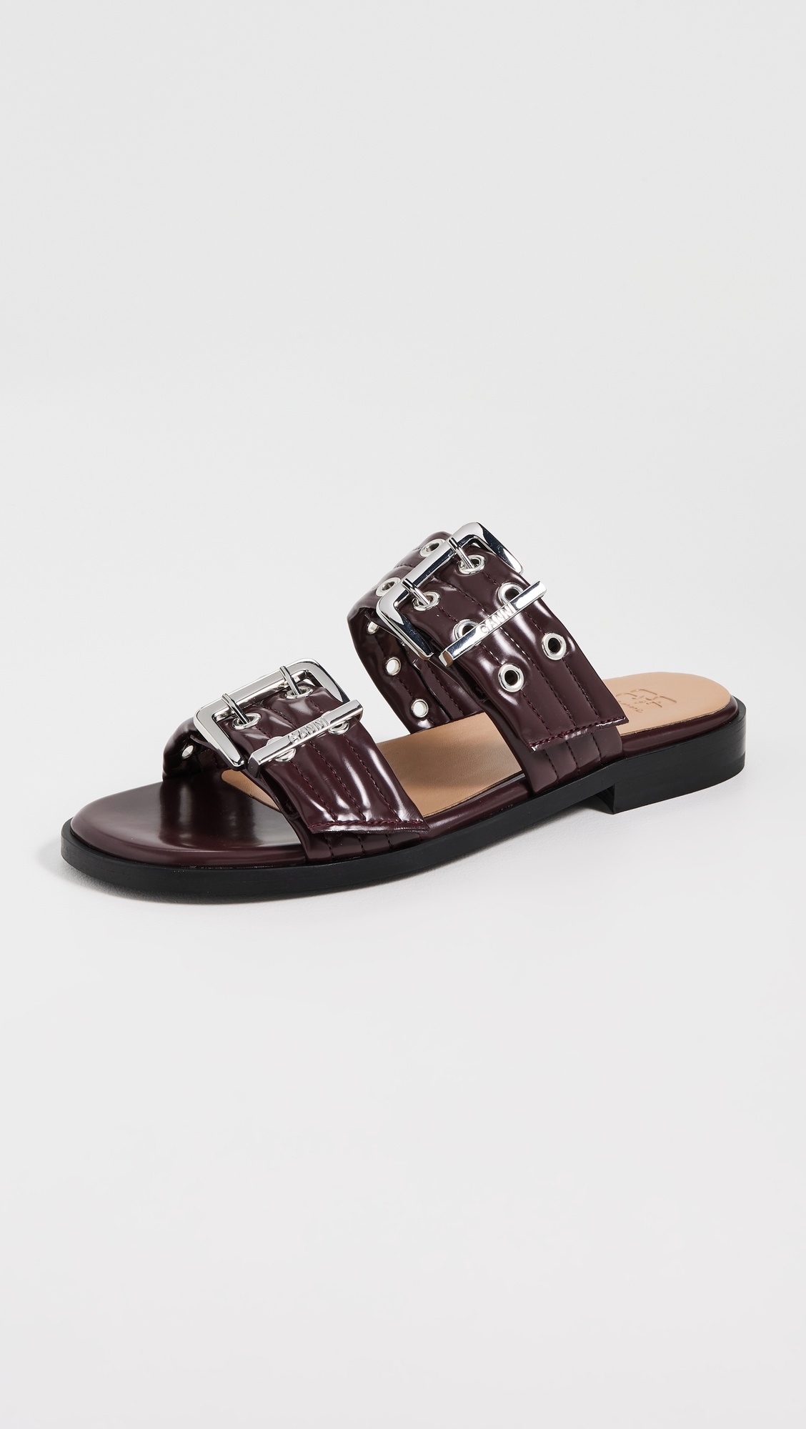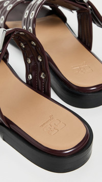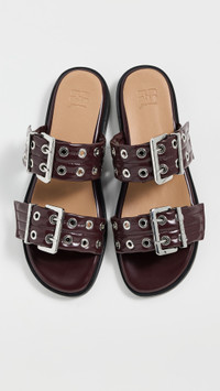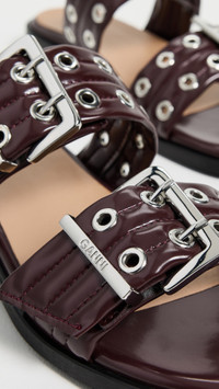 - Upper: Faux leather - Adjustable buckle straps - Cushioned leather footbed - Lining: Unlined - Slip on - Open toe - EVA sole - Made in Portugal - This item cannot be gift-boxed Style #GANNI32303
