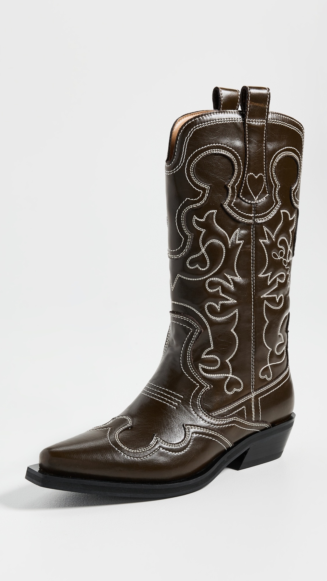 - Upper: Faux leather - Western-inspired stitching - Pull tabs - Lightly cushioned footbed - Lining: Faux leather - Stacked heel - No closure, pull-on design - Pointed toe - Synthetic sole - Made in Portugal - This item cannot be gift-boxed Style #GANNI32304