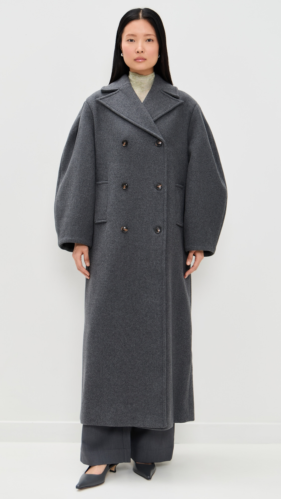 GREY WOOL PEACOAT LONG