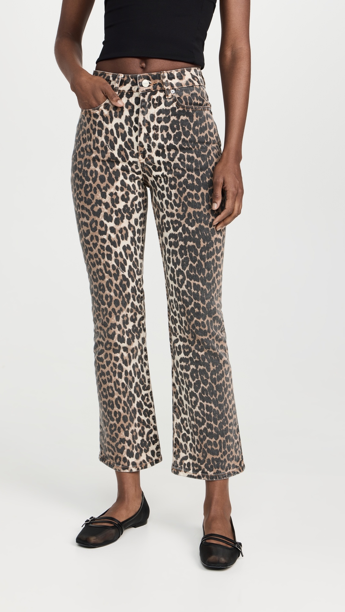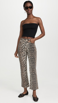 - Fabric: Mid-weight low-stretch denim - Leopard print - Button closure and zip fly - 5-pocket styling - Shell: 99% cotton/1% elastane - Wash cold - Imported, Turkey Style #GANNI32176 Size & Fit Measurements from size 24 Rise: 10.75in / 27cm Inseam: 27.25in / 69cm Leg opening: 16.5in / 42cm