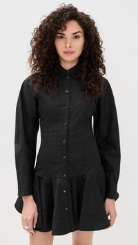 - Fabric: Lightweight, super-stretch shirting - Ruffled hem - Mini length - Collared neck - Long sleeves - Button placket - Shell: 97% cotton/3% elastane - Unlined - Wash cold - Imported, India Style #GANNI32338 Size & Fit Model measurements: Size 32: Brianna (5'9") usually wears size 32 Measurements from size 34 Length: 31.5in / 80.0cm, from shoulder