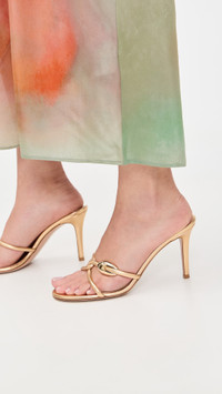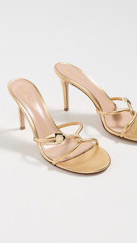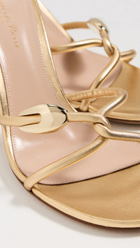 - Upper: Leather - Gold-tone hardware and finish - Crossover strap design - Lightly cushioned footbed - Lining: Leather - Stiletto heel - Slip on - Open toe - Leather sole with rubber heel cap - Made in Italy - This item cannot be gift-boxed Style #GIANR30073
