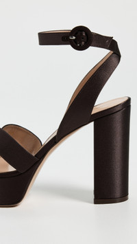 - Upper: Satin - Lining: Leather - Covered heel - Buckle ankle strap - Open toe - Leather sole with rubber heel cap - Made in Italy - This item cannot be gift-boxed Style #GIANR30011 Size & Fit Heel: 4in / 100mm Platform: 1.25in / 30mm
