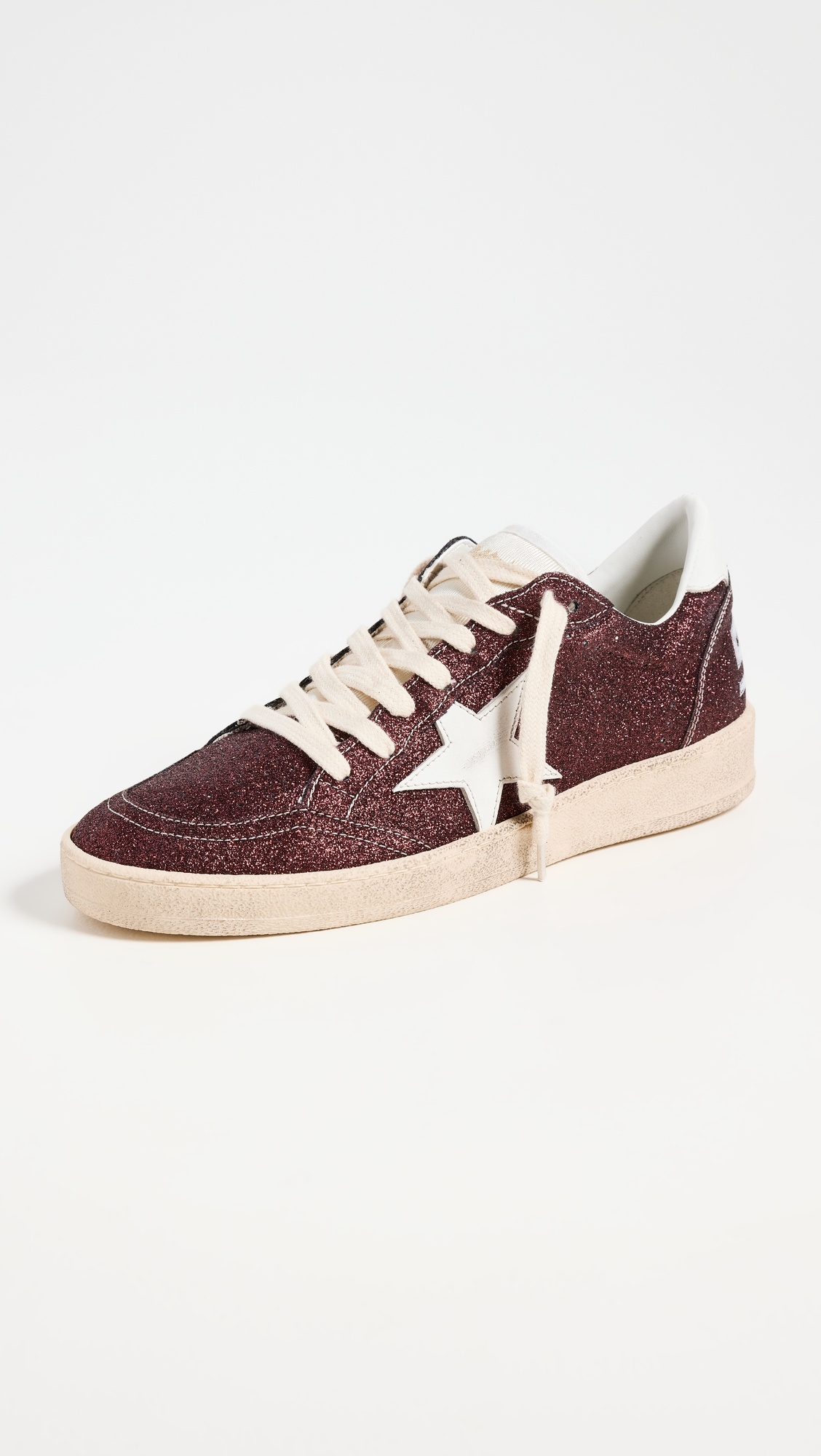 Ball Star in burgundy glitter with white leather star and heel tab