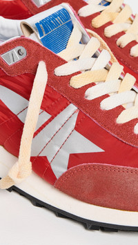 - Upper: Technical weave - Suede trim - Metallic leather backstay and tongue patch - Removable cushioned insole - Signature distressed finish - Lining: Textile - Lace-up closure - Round toe - Rubber sole - Made in Italy - This item cannot be gift-boxed Style #GOOSE21449