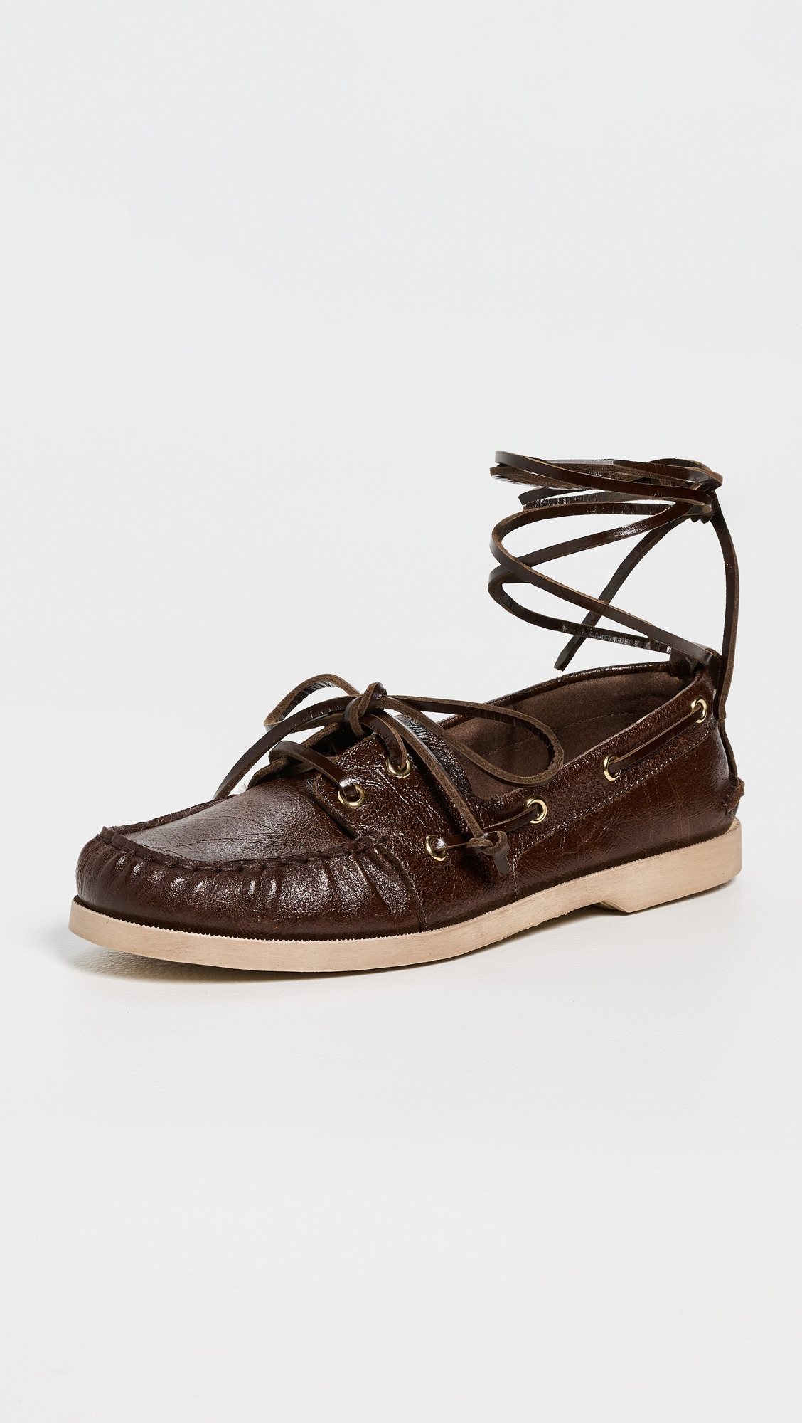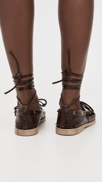 - Upper: Leather - Laces at top with gold-tone accent - Optional wraparound ankle laces at heel - Crinkled glossy finish - Lining: Leather - Slip on - Round toe - Rubber sole - Made in Italy - This item cannot be gift-boxed Style #GOOSE21456