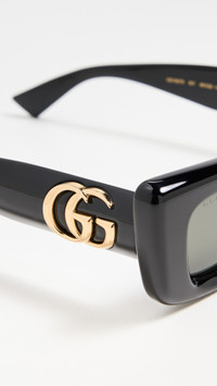 - Gold-tone logo emblems at arms - Soft case included - Cateye frame - Non-polarized lenses - Made in Italy - Acetate frame - Plastic lenses Style #GUCII20454 Size & Fit Width: 5.75in / 14.5cm Lens Width: 49mm Bridge: 22mm Arms: 150mm Height: 1.5in / 4cm