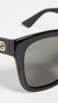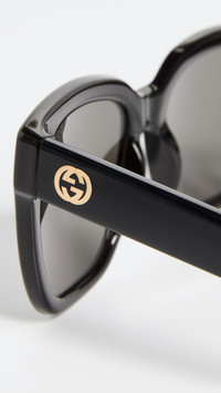 - Gold-tone logo lettering - Hardshell case and cleaning cloth included - Square frame - Non-polarized lenses - Made in Italy - Plastic frame - Plastic lenses Style #GUCII20382 Size & Fit Width: 5.75in / 14.5cm Height: 2.25in / 6cm Lens Width: 54mm