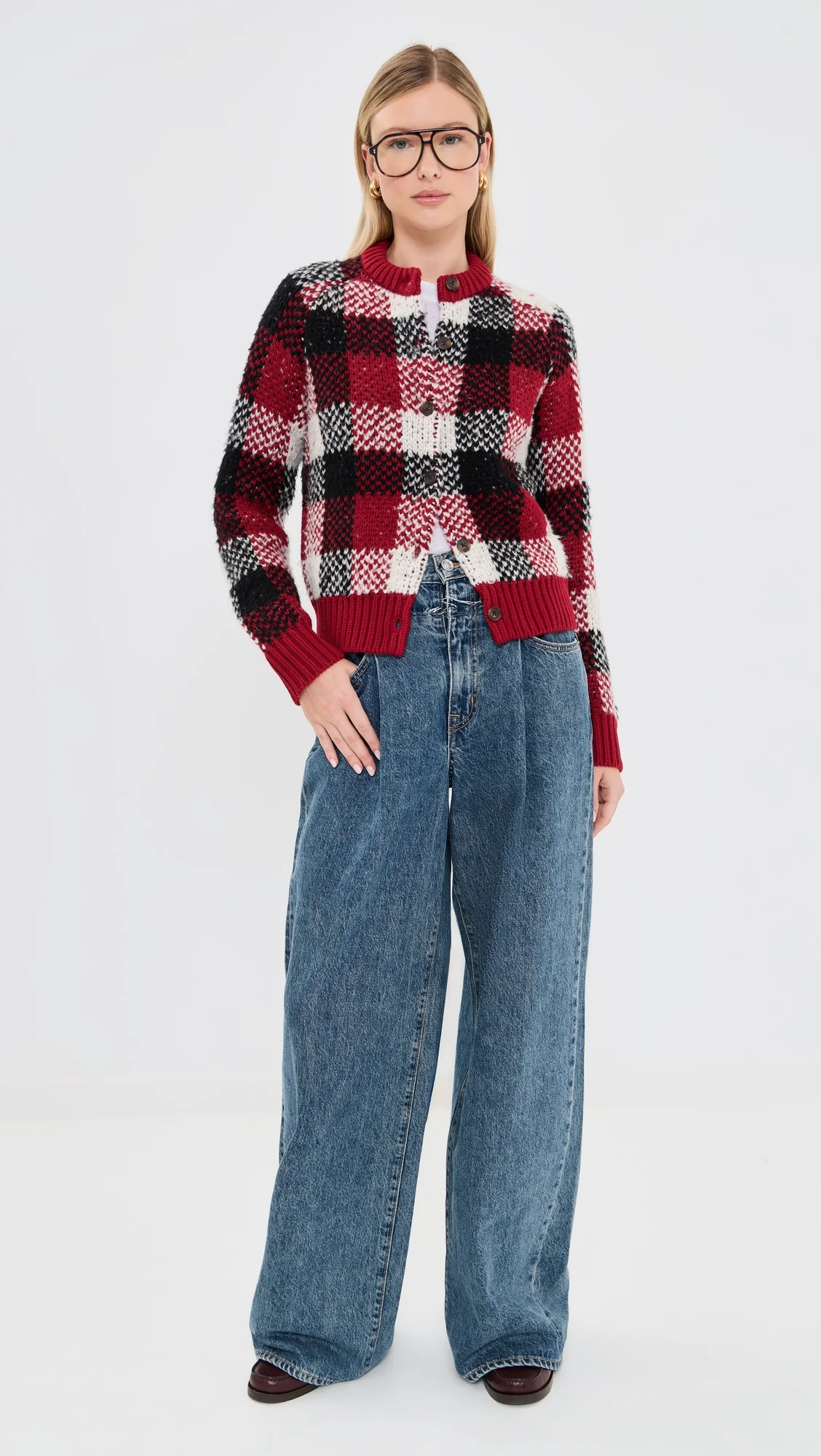 - Fabric: Mid-weight stretch knit - Plaid pattern - Ribbed trim - Crew neck - Long sleeves - Button placket - Shell: 79% wool/17% cashmere/4% polyamide - Hand wash or dry clean - Imported, China Style #GUEST30100