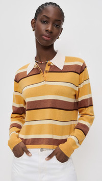 - Fabric: Lightweight stretch knit - Stripe pattern - Polo neckline - Long sleeves - Shell: 100% cashmere - Hand wash - Imported, China Style #GUEST30125 Size & Fit Model measurements: Size XS: Cher (5'11") usually wears size XS Measurements from size XS Length: 20.5in / 52.0cm, from shoulder