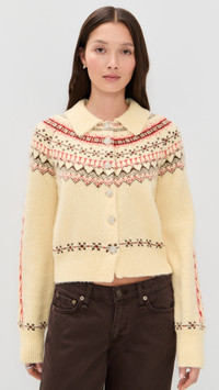 - Fabric: Mid-weight stretch knit - Fair isle pattern - Ribbed trim - Collared neck - Long sleeves - Button placket - Shell: 87% wool/8% polyamide/5% cashmere - Hand wash - Imported, China Style #GUEST30121 Size & Fit Model measurements: Size XS: Yada (5'9") usually wears size XS Measurements from size XS Length: 19in / 48.0cm, from shoulder