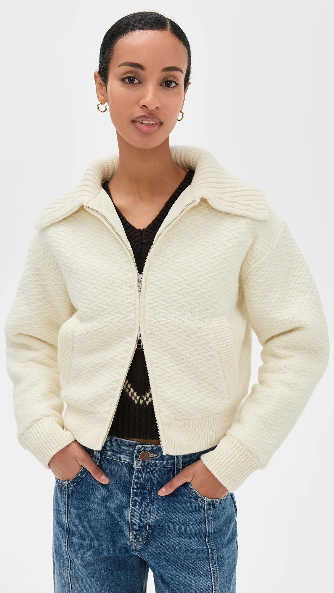 - Fabric: Mid-weight stretch knit - Ribbed edges - Collared neck - Long sleeves - Two-way zip closure - Slant hip pockets - Shell: 70% wool/30% cashmere - Lined - Lining: 100% polyester - Fill: 100% polyester - Hand wash - Imported, China Style #GUEST30123 Size & Fit Model measurements: Size XS: Mical (5'10") usually wears size XS Measurements from size XS Length: 19.75in / 50.0cm, from shoulder