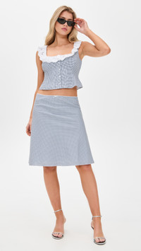 - Fabric: Lightweight, low-stretch weave - Gingham check - Covered elastic waistband - Shell: 58% polyester/36% rayon/6% nylon - Hand wash or dry clean - Imported, China Style #DGUIZ30030