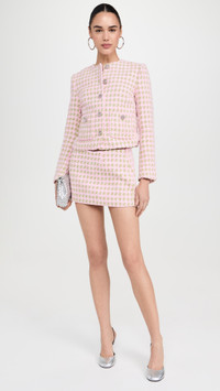- Fabric: Mid-weight, non-stretch tweed - Houndstooth pattern - Mini length - Hidden zip at side - Shell: 100% polyester - Lined - Lining: 92% polyester/8% spandex - Wash cold - Imported, China Style #DGUIZ30024