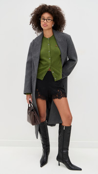 - Fabric: Lightweight, super-stretch knit - Embroidered teddy bear at breast - Crew neck - Long sleeves - Button placket - Shell: 37% nylon/37% viscose/16% wool/10% lyocell - Dry clean - Imported, China Style #DGUIZ30072 Size & Fit Model measurements: Size XS: Drew (5'8") usually wears size XS-S Measurements from size XS Length: 22in / 56.0cm, from shoulder