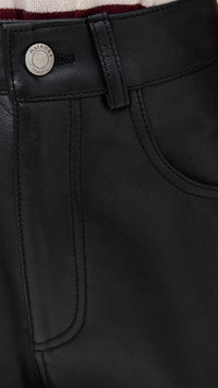 - Fabric: Mid-weight, non-stretch leather - Button closure and zip fly - 5-pocket styling - Shell: 100% lambskin - Unlined - Leather clean - Imported, India Style #HAIKU30046