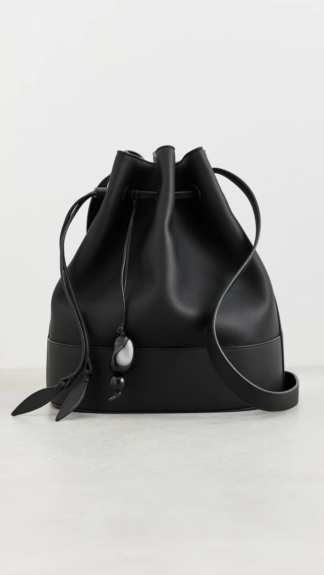 - Leather - Structured base - Drawstring top - Patch interior pocket - Adjustable strap - Lining: Textile - Weight: 23oz / 0.65kg - Made in Spain Style #HSEAS30102 Size & Fit Length: 10.25in / 26cm Height: 11.75in / 30cm Depth: 7.75in / 20cm Strap drop: 19.75in / 50cm