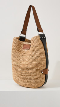 - Fabric: Woven raffia - Leather trim - Tie at top - Unlined - Weight: 21oz / 0.6kg - Imported, Tunisia Style #ISMDB31228 Size & Fit Height: 13.5in / 34cm Length: 14.5in / 37cm Depth: 6in / 15cm Strap drop: 6.75in / 17cm