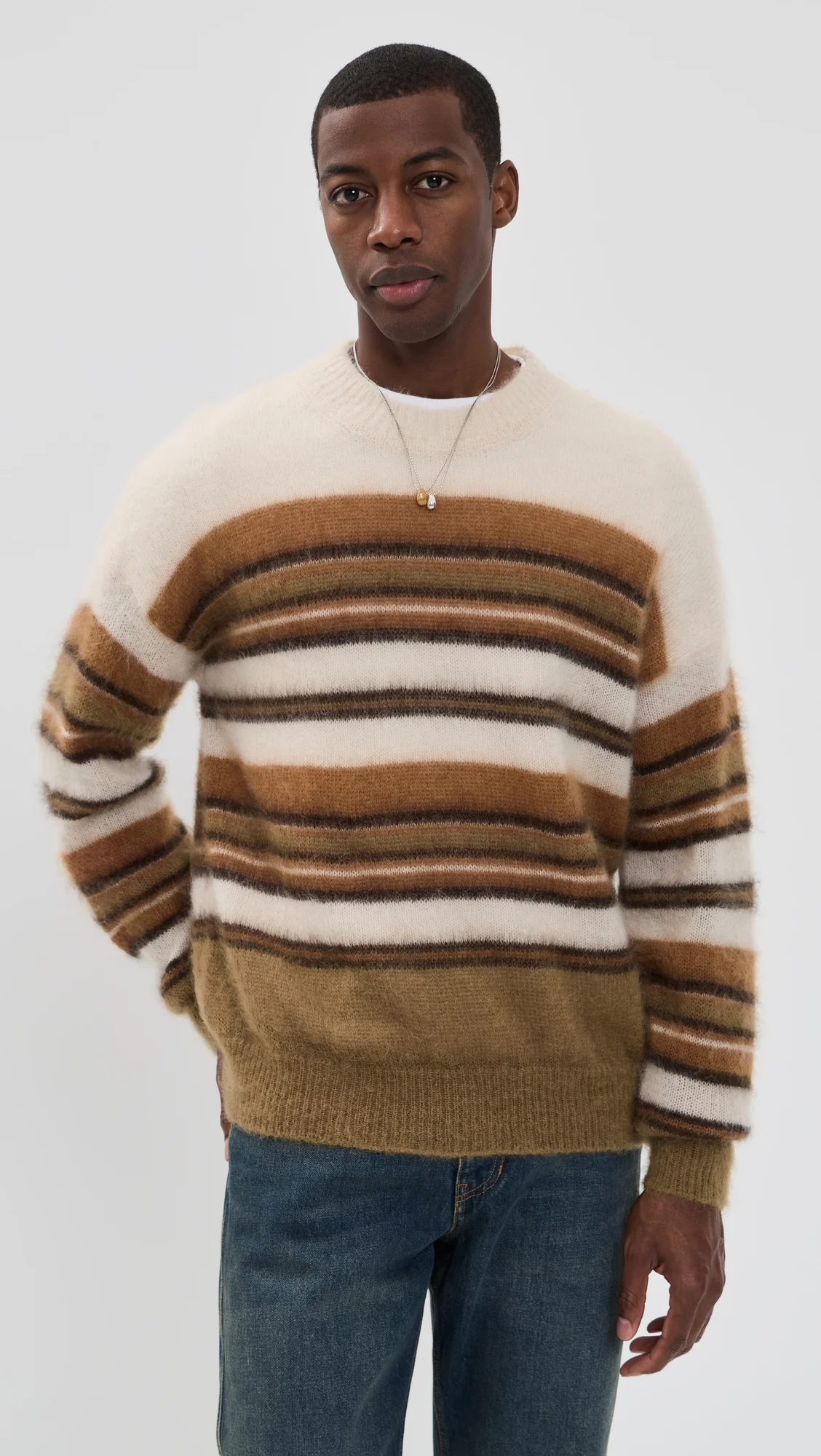 - Fabric: Lightweight brushed knit with stretch - Stripe pattern - Ribbed trim - Crew neck - Long sleeves with dropped shoulders - Shell: 50% mohair/32% polyamide/18% wool - Hand wash or dry clean - Made in Italy Style #ISMAR31214 Size & Fit Model measurements: Size L: Magor (6'3") usually wears size L Measurements from size L Length: 26in / 66cm Sleeve: 34.75in / 88cm Chest: 50.5in / 128cm