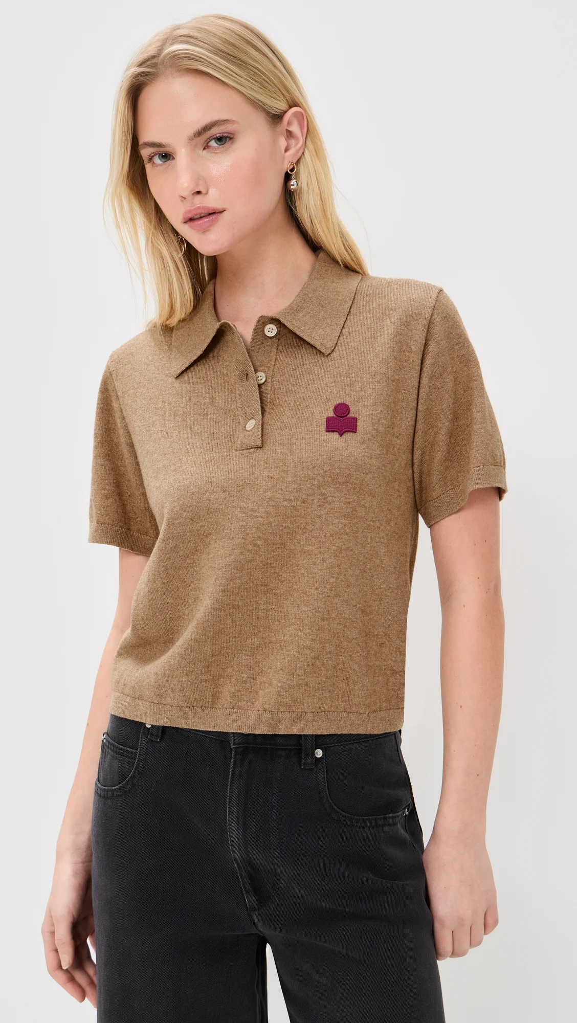- Fabric: Lightweight stretch knit - Embroidered logo at breast - Polo neckline - Short sleeves - Partial button placket - Shell: 70% cotton/30% wool - Trim: 61% cotton/26% wool/11% polyamide/2% elastane - Hand wash - Imported, China Style #IMARA31087 Size & Fit Model measurements: Size 34: Kayla (5'7.5") usually wears size 32-34 Measurements from size 36 Length: 20in / 51.0cm, from shoulder