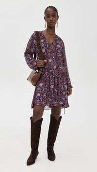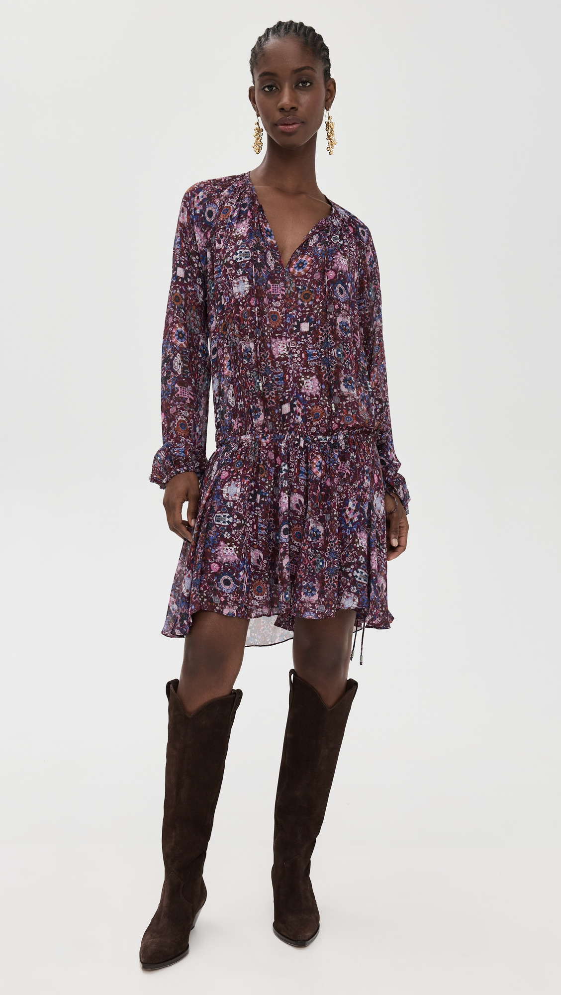 - Fabric: Lightweight, non-stretch georgette - Drawstring at drop waist - Floral print - Mini length - Split neckline - Long sleeves with button cuffs - Tie keyhole at neckline - Shell: 100% viscose - Unlined bodice, lined skirt - Lining: 100% viscose - Dry clean - Imported, India Style #IMARA30978
