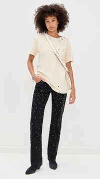 - Fabric: Mid-weight, non-stretch denim - Allover sliver-tone studded embellishments - Leather logo patch at back - Button closure and zip fly - 5-pocket styling - Shell: 100% cotton - Wash cold - Imported, Morocco Style #IMARA31038
