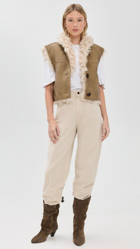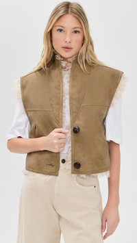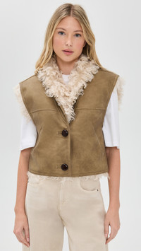 - Fabric: Mid-weight, non-stretch faux suede - Reversible design - Faux shearling lining - Shawl collar - Sleeveless - Button placket - Welt front pockets - Shell: 100% polyurethane - Lined - Lining: 100% polyester - Dry clean - Imported, India Style #IMARA31021 Size & Fit Model measurements: Size 34: Giselle (5'10") usually wears size 32 Measurements from size 34 Length: 20.5in / 52.0cm, from shoulder