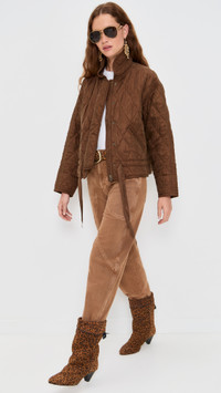 - Fabric: Mid-weight, non-stretch silky weave - Quilted design - Collared neck - Long sleeves - Snap flap and hidden zip placket - Drawstring waist - Slant hip pockets - Shell: 60% cupro/40% viscose - Lined - Lining: 100% cotton - Fill: 100% polyester - Dry clean - Imported, China Style #IMARA30995 Size & Fit Model measurements: Size 34: Maia (5'10") usually wears size 32 Measurements from size 34 Length: 21.75in / 55.0cm, from shoulder