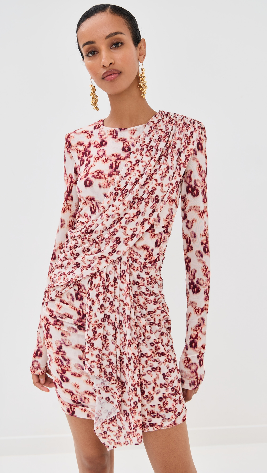 - Fabric: Lightweight, super-stretch slinky knit - Padded shoulders - Draped detailing - Floral print - Mini length - Crew neck - Long sleeves - Hidden zip at back - Shell: 92% viscose/8% elastane - Lined - Hand wash or dry clean - Made in Portugal Style #ISMDB32227 Size & Fit Designed with a slim, mini-length silhouette. Jersey knit has a slinky feel and offers stretch. Shopbop’s expert stylist says: Runs true to size Model measurements: Size 34: Mical (5'10") usually wears size 32 Measurements from size 36 Length: 32in / 81.0cm