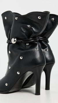 - Upper: Lambskin - This shoe is available in whole sizes only. If you wear a half size, please size up. - Silver-tone stud embellishments - Cinched ankle with optional strap - Lining: Leather - No closure, pull-on design - Pointed toe - Leather sole with rubber heel cap - Made in Italy - This item cannot be gift-boxed Style #ISMDB32281 Size & Fit Heel: 3.5in / 90mm