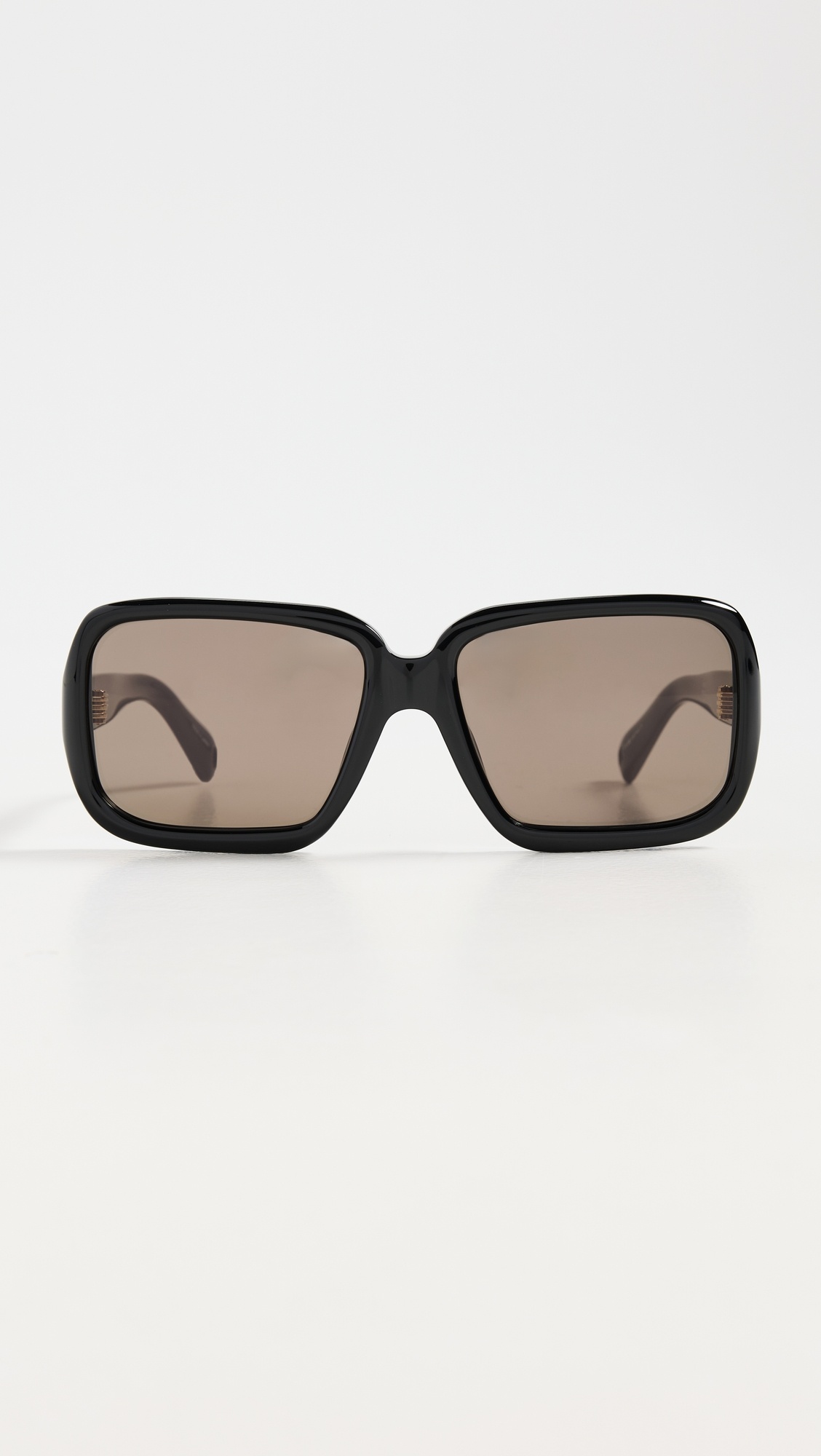 - Gold-tone logo lettering at temples - Soft case and cleaning cloth included - Square frame - Non-polarized lenses - Imported, Japan - Plastic frame - Plastic lenses Style #JCQUE31309