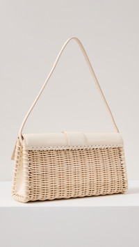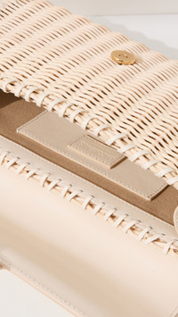 - Fabric: Woven wicker - Gold-tone hardware and logo emblem - Leather trim - Fold-over flap with magnetic snap - Card slot at interior - Optional strap - Twill lining - Weight: 15oz / 0.43kg - Made in Italy Style #JCQUE31097 Size & Fit Length: 10.75in / 27.5cm Height: 5.5in / 14cm Depth: 1.75in / 4.5cm Strap drop: 7.75in / 20cm