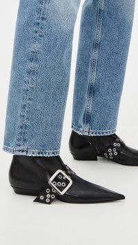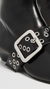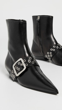 - Upper: Goatskin - Cross-over belt with silver-tone hardware - Lining: Leather - Stacked heel - Ankle zip - Pointed toe - Leather sole with rubber heel cap - Made in Italy - This item cannot be gift-boxed Style #JLSAN30222 Size & Fit Heel: 0.75in / 20mm