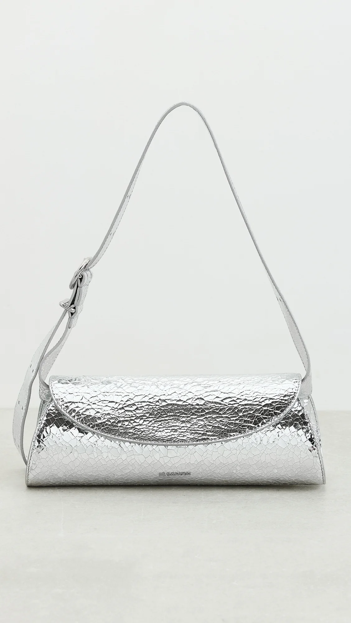 - Sheepskin - Logo embossed at face - Crinkled metallic finish - Fold-over flap with magnetic closure - Card slot at interior - Adjustable strap - Lining: Leather - Weight: 15oz / 0.43kg - Made in Italy Style #JLSAN30276 Size & Fit Length: 11.5in / 29cm Height: 3.75in / 9.5cm Depth: 4in / 10cm Strap drop: 18in / 46cm