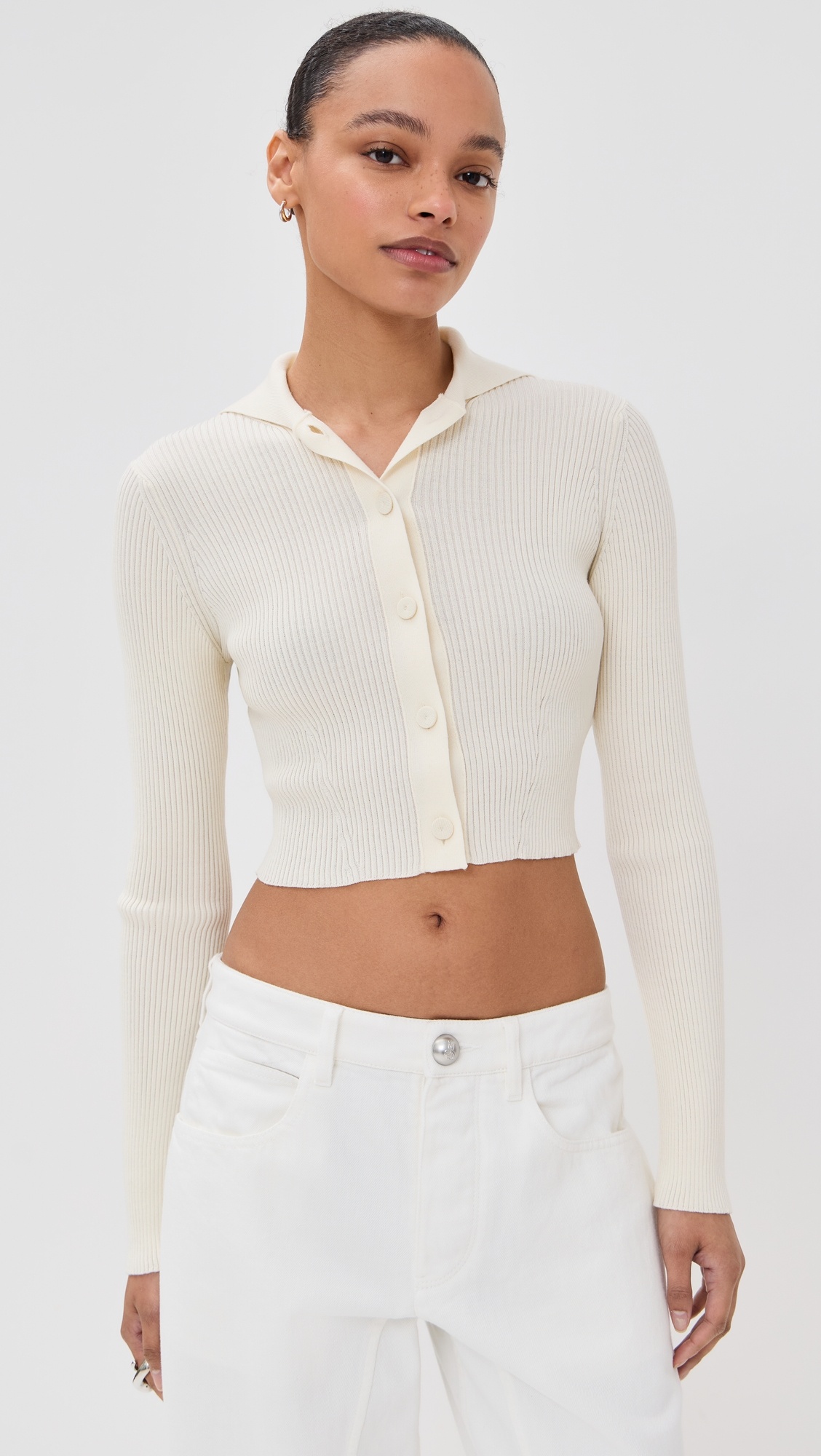 - Fabric: Lightweight ribbed knit - Collared neck - Long sleeves - Button placket - Shell: 44% virgin wool/44% viscose/12% polyamide - Dry clean - Made in Italy Style #JLSAN30167