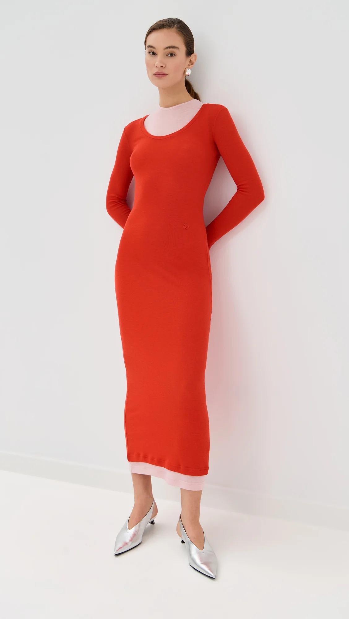 - Fabric: Lightweight, super-stretch jersey - Set of 2 dresses worn layered or separately - Embroidered logo at waist - Maxi length - Crew neck - Long sleeves - Pullover design, no closure - Shell: 100% virgin wool - Unlined - Dry clean - Made in Italy Style #JLSAN30232