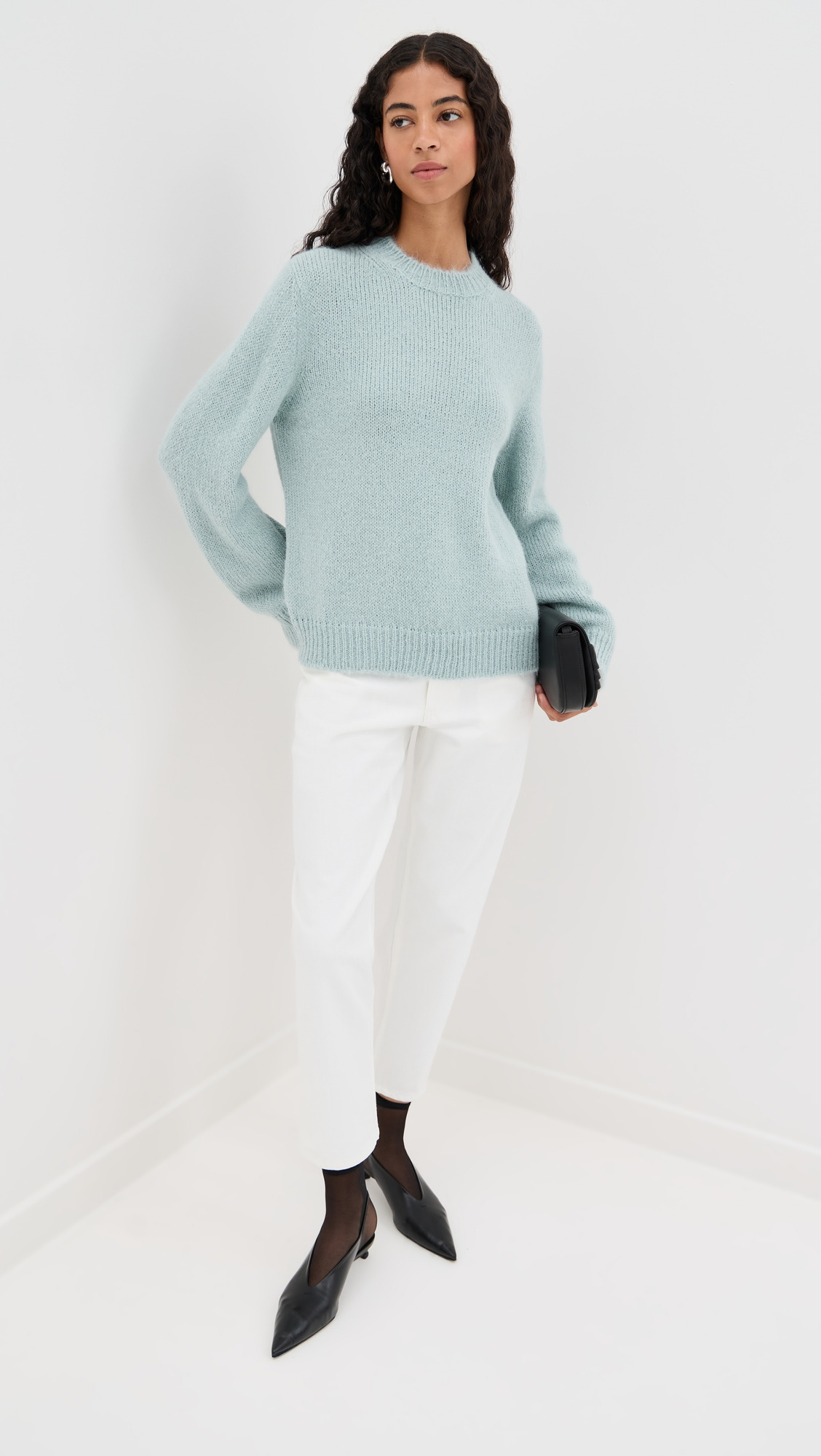 - Fabric: Mid-weight stretch knit - Brushed finish - Ribbed trim - Crew neck - Long sleeves - Shell: 81% alpaca/16% wool/3% polyamide - Dry clean - Made in Italy Style #JLSAN30225 Size & Fit Model measurements: Size 34: Rocio (5'11") Measurements from size 36 Length: 23.25in / 59.0cm, from shoulder