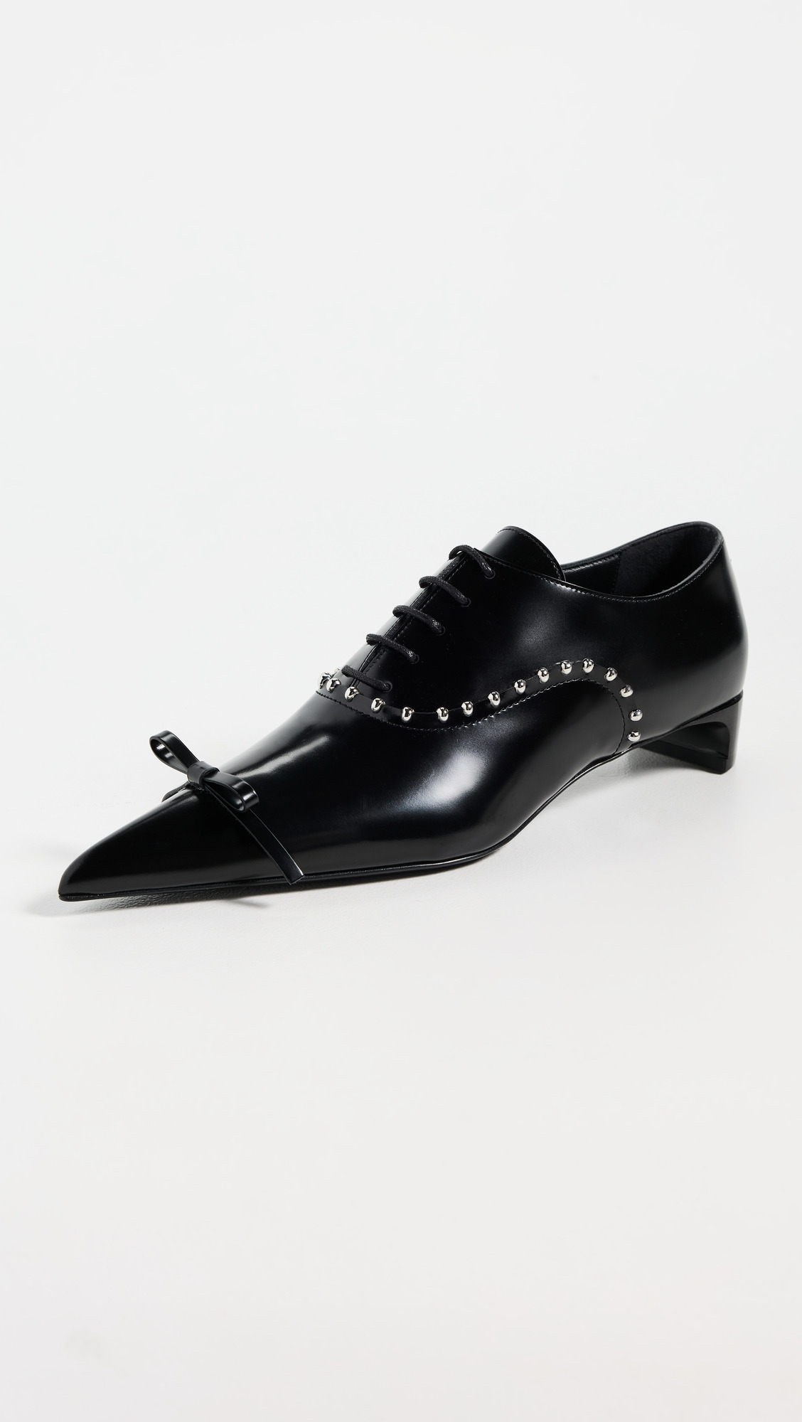- Upper: Calfskin - Silver-tone studded trim - Lining: Leather - Block heel - Lace-up closure - Pointed toe - Leather sole with rubber heel cap - Made in Italy - This item cannot be gift-boxed Style #JLSAN30260