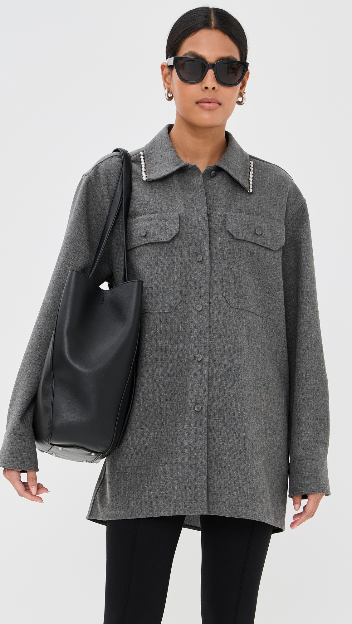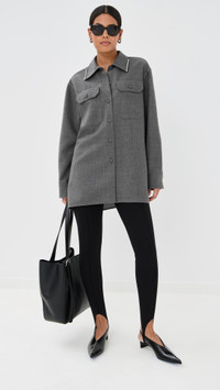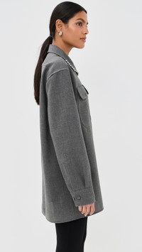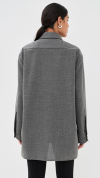 - Fabric: Mid-weight, non-stretch weave - Silver-tone bead accents at collar - Collared neck - Long sleeves with button cuffs - Button placket - Flap breast pockets - Shell: 100% wool - Dry clean - Made in Italy Style #JLSAN30255 Size & Fit Model measurements: Size 36: Samruddhi (5'8") usually wears size 30-32 Measurements from size 34 Length: 29.5in / 75.0cm, from shoulder
