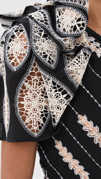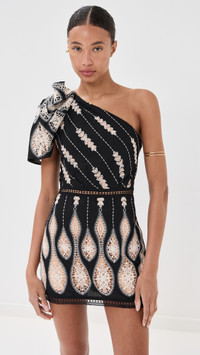 - Fabric: Lightweight, non-stretch plain weave - Allover cut-out lace and floral motifs - Non slip rubber binding at neckline - Ruched shoulder - Pencil skirt - Mini length - One-shoulder neckline - Sleeveless - Snap closure and hidden zip at back - Shell: 100% polyester - Lined - Wash cold - Imported, Colombia Style #JORTI30518