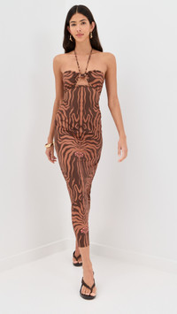 - Fabric: Lightweight, super-stretch silky jersey - Cutout at bust - Midi length - Halter neckline - Bikini clasp at back - Shell: 78% recycled polyamide/22% elastane - Unlined - Hand wash - Imported, Colombia Style #JORTI30465
